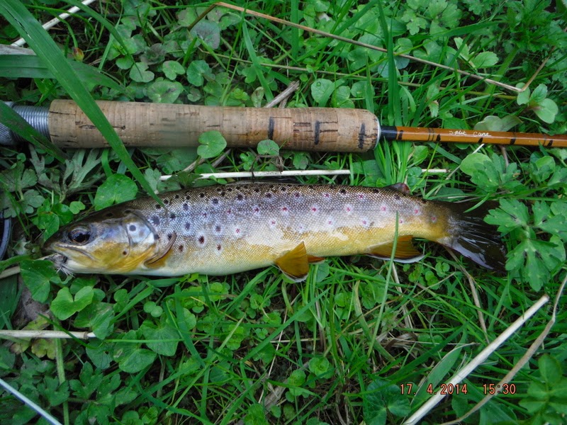 Hooked another one that came straight at me and then jumped and was gone, so I moved up stream and found one rising in very fast water, better fish than the first one but not massive.